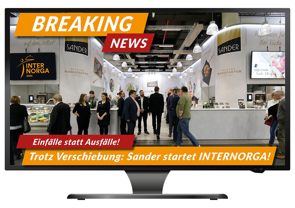 Live aus Wiebelsheim: Internorga 2020 Die Sander Frische-Manufaktur verlegt das Erlebnis Internorga dieses Jahr unter dem Motto "Einfälle statt Ausfälle" ins Internet und begeistert mit einer köstlichen Fülle an Neuheiten und zahlreichen Innovationen!