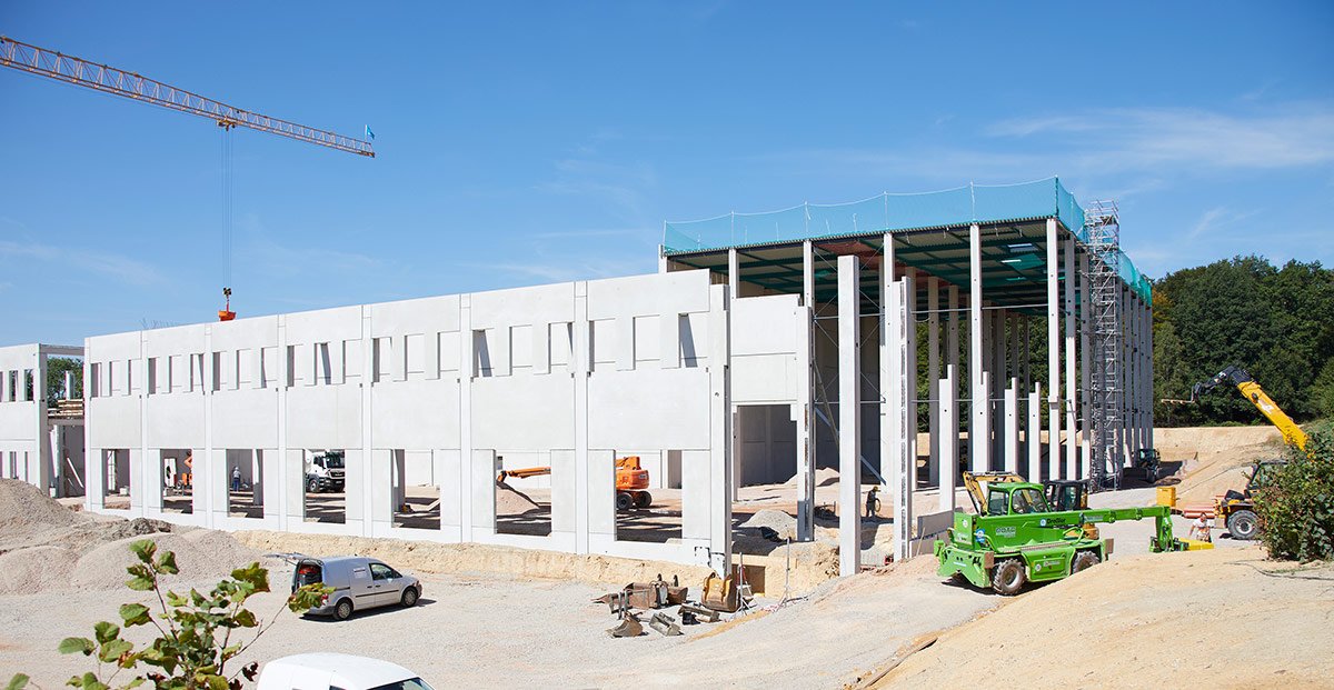 Schon von der viel befahrenen A61 aus ist es gut zu erkennen: Das neue Logistikzentrum von Sander am Standort Wiebelsheim im Hunsrück nimmt bereits deutlich Form an. Die Inbetriebnahme ist für Herbst 2019 geplant.